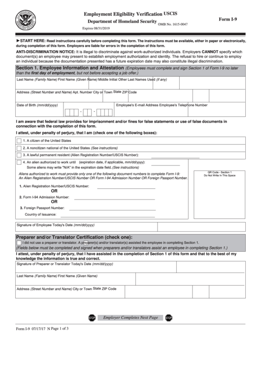 Video form i 9, employment eligibility verification section two uscis. Employment verification uscis eligibility verify. Image of section 1 of form i-9 employment eligibility verification. I-9 employment form printable. Uscis form i9 fillable